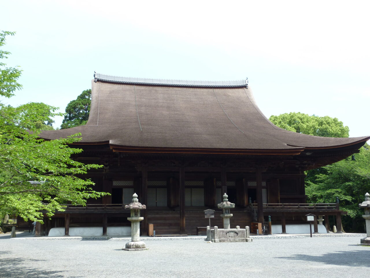 広大な境内で、ひときわ威容を誇るのが三井寺の本堂・金堂。1599年に豊臣秀吉の正室北政所により再建された。伝統的な天台系密教仏堂の様式を伝える桃山時代の名建築として知られている。